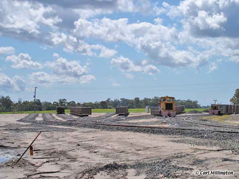 Image: Isis Mill truck dumps, general view of Alfs road siding with D10 shunting, August 2005. Carl Millington, photographer.