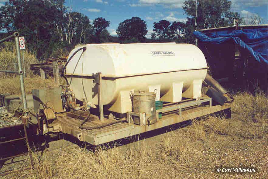 Image: Isis Central Mill: D11 brake wagon, fuel tanks for diesels, Don Dudman (Mill Electrician), photographer