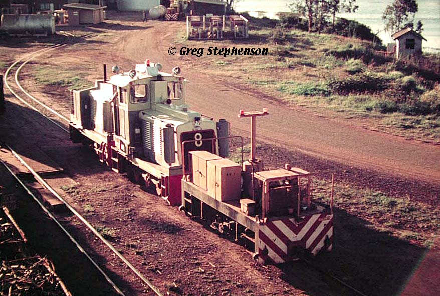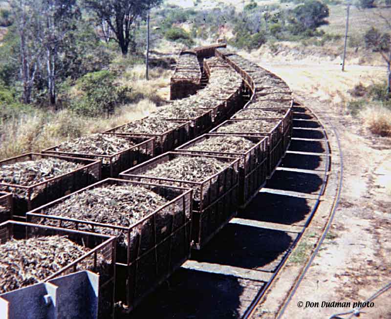 Image: Isis Central Mill: Double header D5, full rake into new yard, Don Dudman (Mill Electrician), photographer