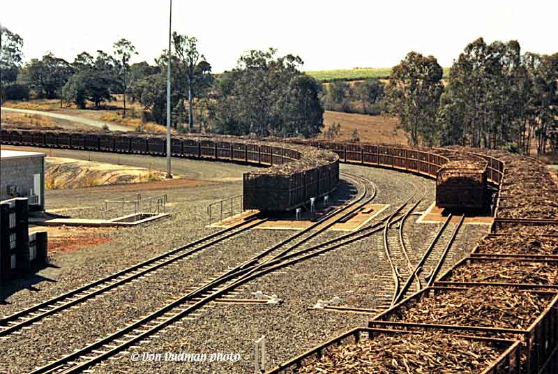 Image: Isis Mill truck dumps, looking at Alfs rd siding from D10, August 2005. Carl Millington, photographer.