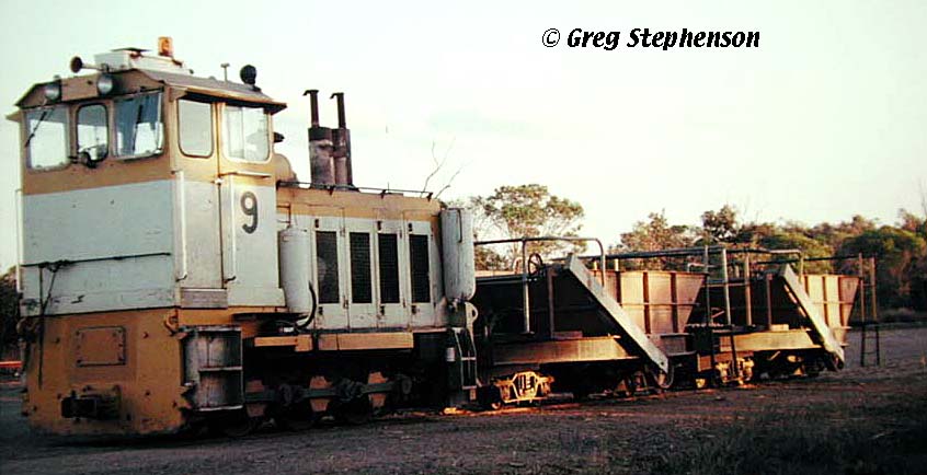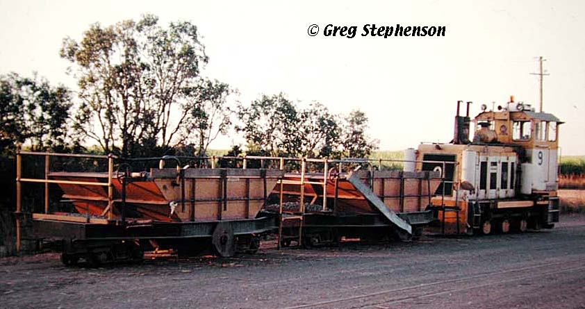 Image: North Gregory, Isis Central Mill, '9' and Ballast Wagons; 15 Aug 1997. Greg Stephenson, photographer