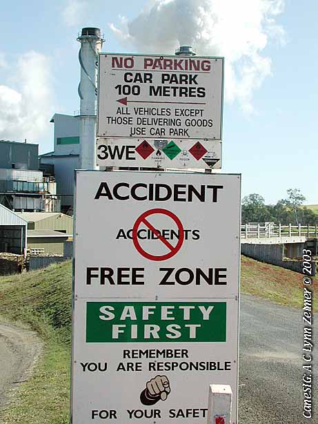 Image: Isis Mill, safety sign. 1 August 2002. Lynn Zelmer, photographer