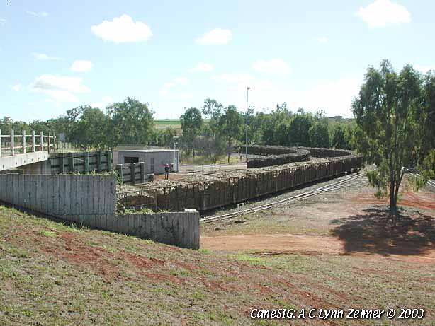 Image: Isis Mill; loaded bin yard. 1 of 2. 1 August 2002. Lynn Zelmer, photographer