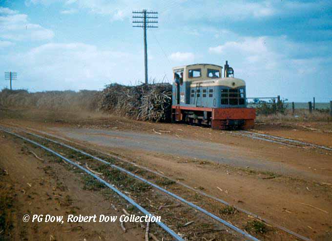Image: D2, an early diesel locomotive on the Isis Mill, 2', 1954. PG Dow, photographer. Robert Dow Collection