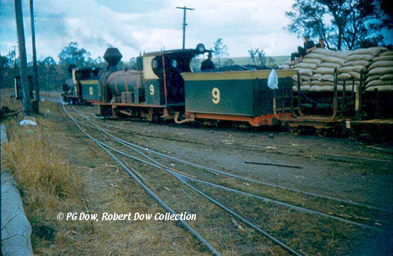 Image: Number 9 Isis Mill 2', 1954. Number 9 and number 10 were 'big' locomotives for 2 foot gauge by any standard. PG Dow, photographer. Robert Dow Collection